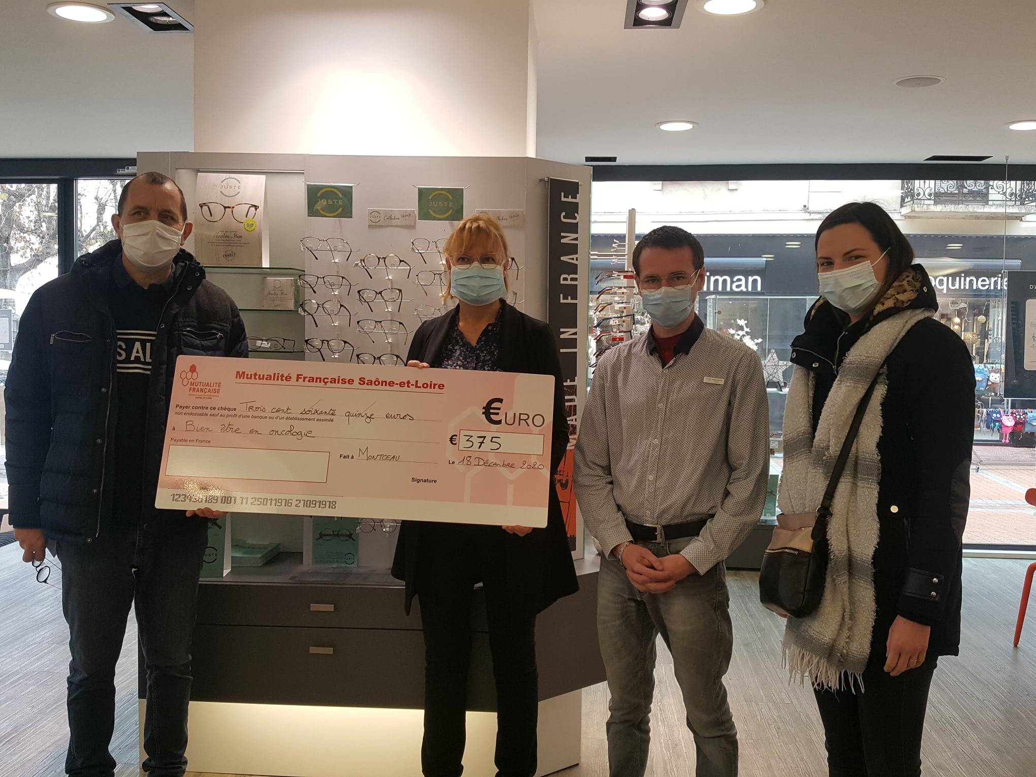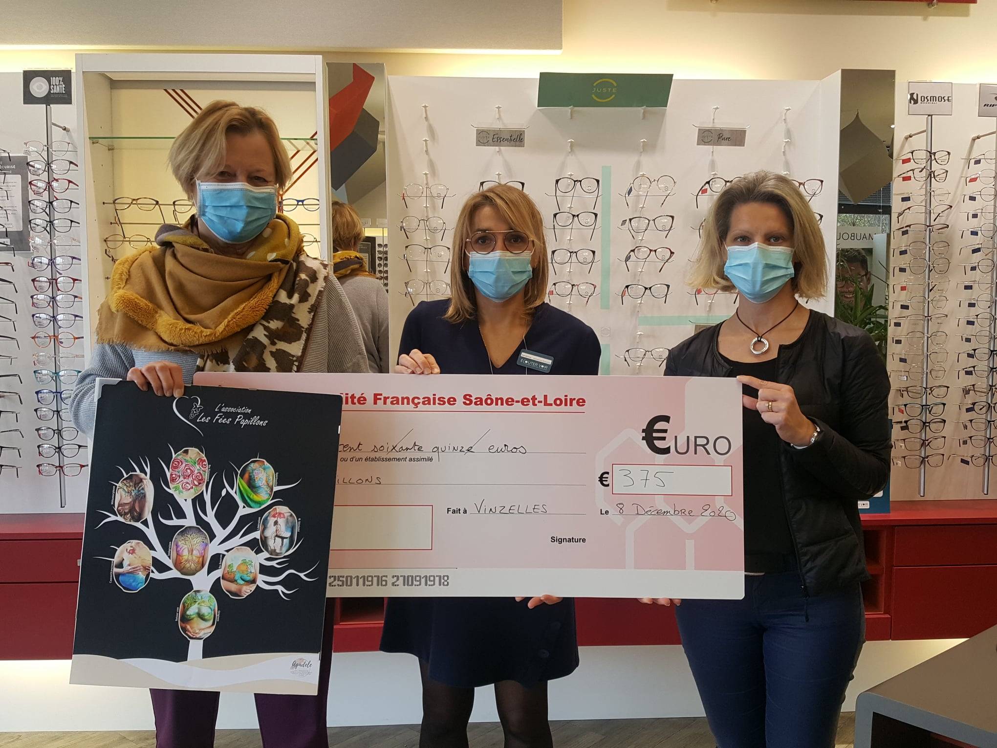 Au terme du mois d’octobre, 1466 paires de lunettes ont été vendues, et notre don a été arrondi à 1500 €. Chaque association reçoit donc 375€.