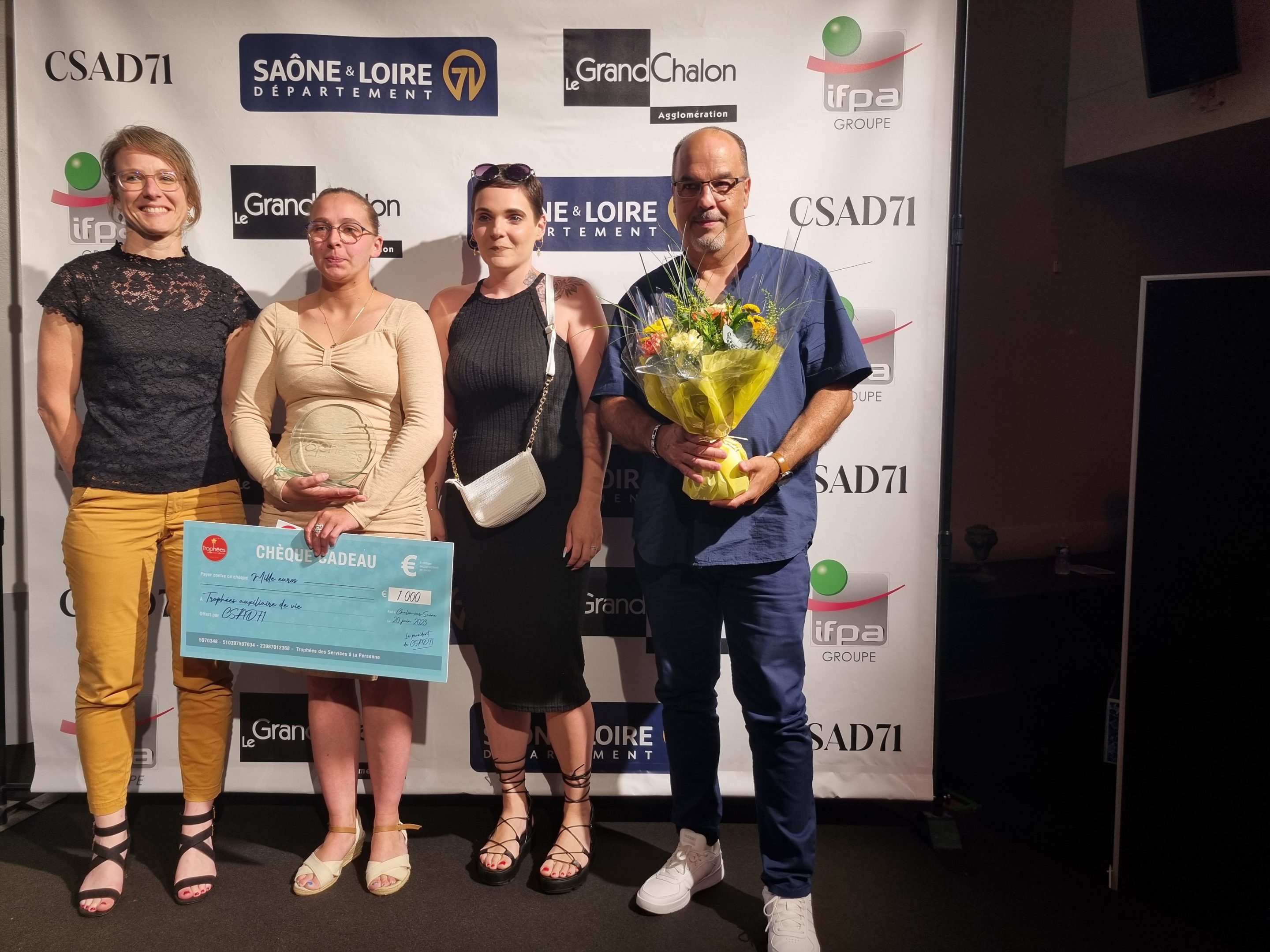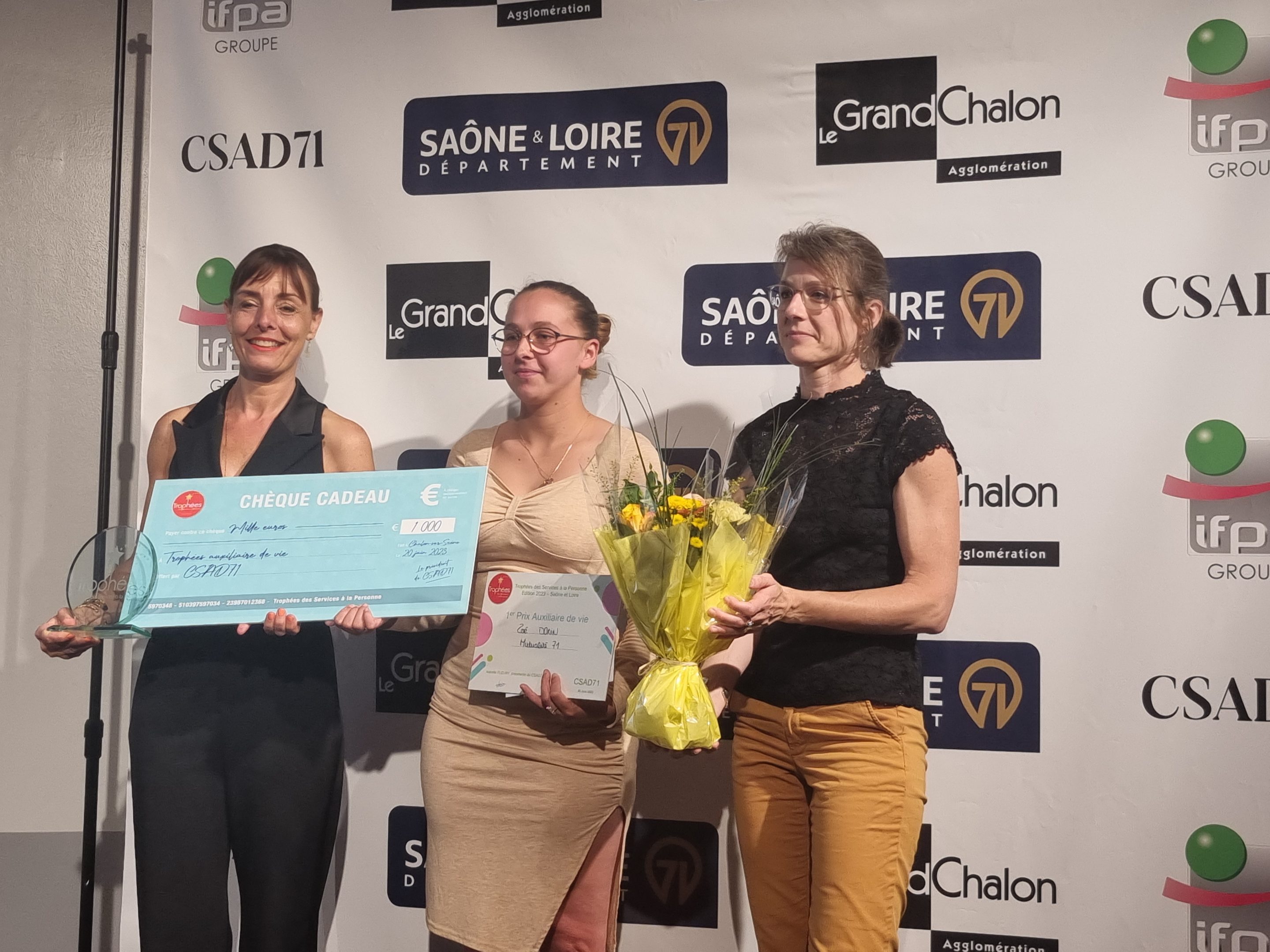 Le premier prix des Trophées Services à Domicile a été remporté par Zoé Dorin, une auxiliaire de vie de notre service d’aide et d’accompagnement à domicile. La remise du prix a été réalisée par Claude Cannet, avec Carine FOSSIER, responsable du service, présente lors de la cérémonie.